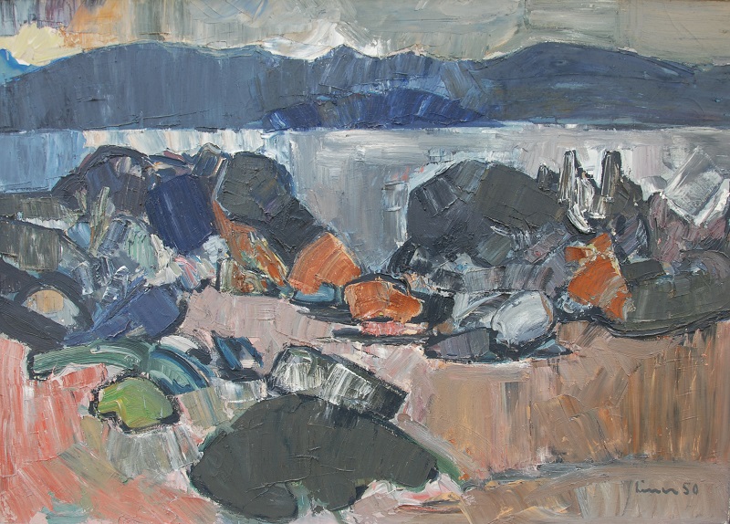 Boote am BodenseeÖl/Malkarton, 70 x 90 cmum 1960