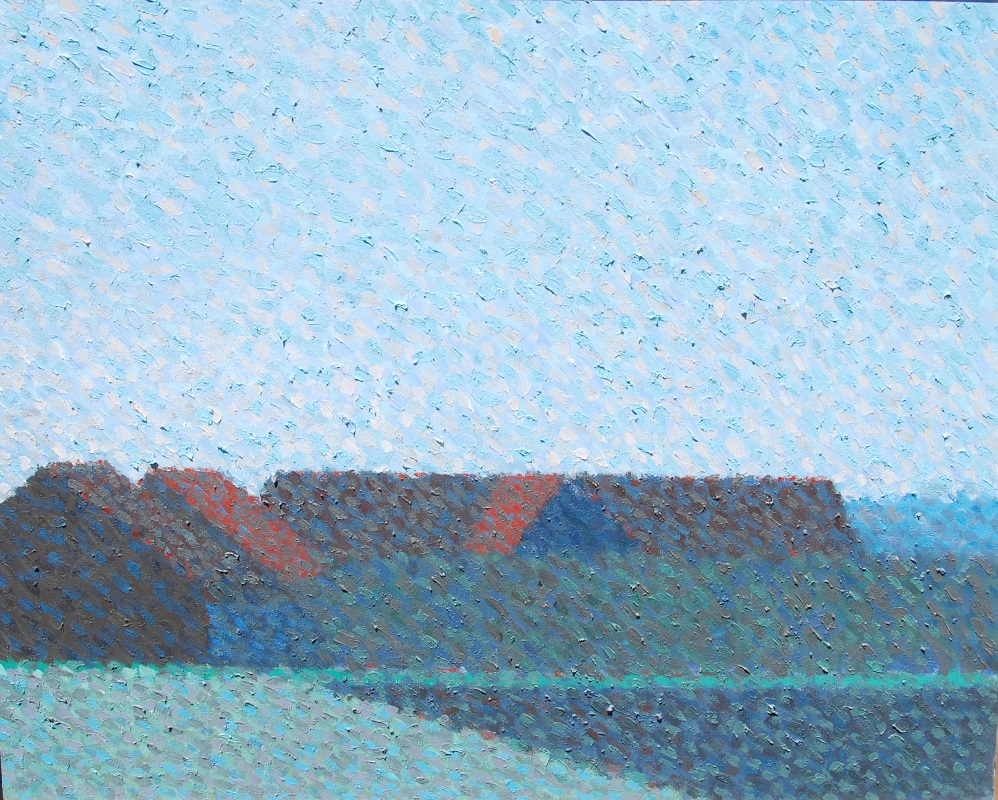 "Landschaft mit Häuser" Öl auf Leinwand, 80 x 100 cm rückeitig